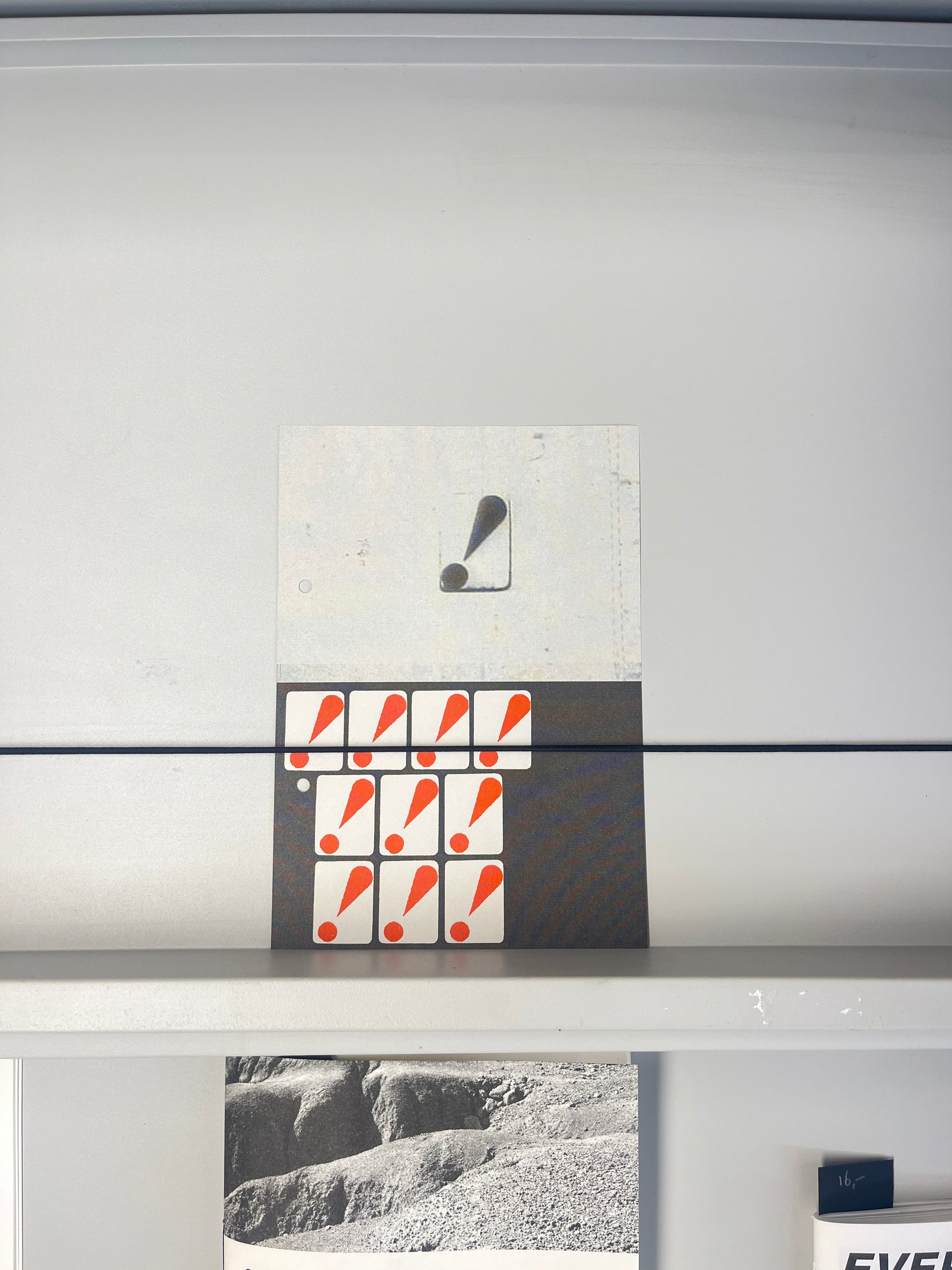 The red exclamation mark used by Hi Red Center, a Japanese avant-garde art collective active in the 1960s, symbolises urgency, provocation, and a challenge to the status quo. It aligns with their ethos of questioning societal norms, disrupting the ordinary, and drawing attention to overlooked aspects of daily life and urban environments. In their work, this symbol emphasises the collective’s playful yet critical stance on modern consumerism and conformity in post-war Japan.
